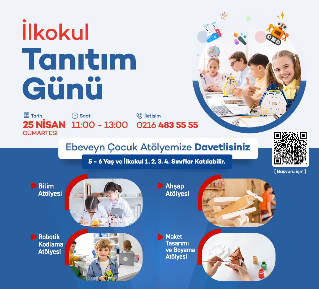 Çocuklarımızın var olan yeteneklerini keşfetmeyi, potansiyellerini geliştirmeyi amaçlıyoruz. Atölye etkinlikleri ile çocuklarımızın özgüven, iş disiplini, hayal gücü, analitik düşünme ve takım çalışması gibi becerilerini üst düzeye çıkarıyoruz.